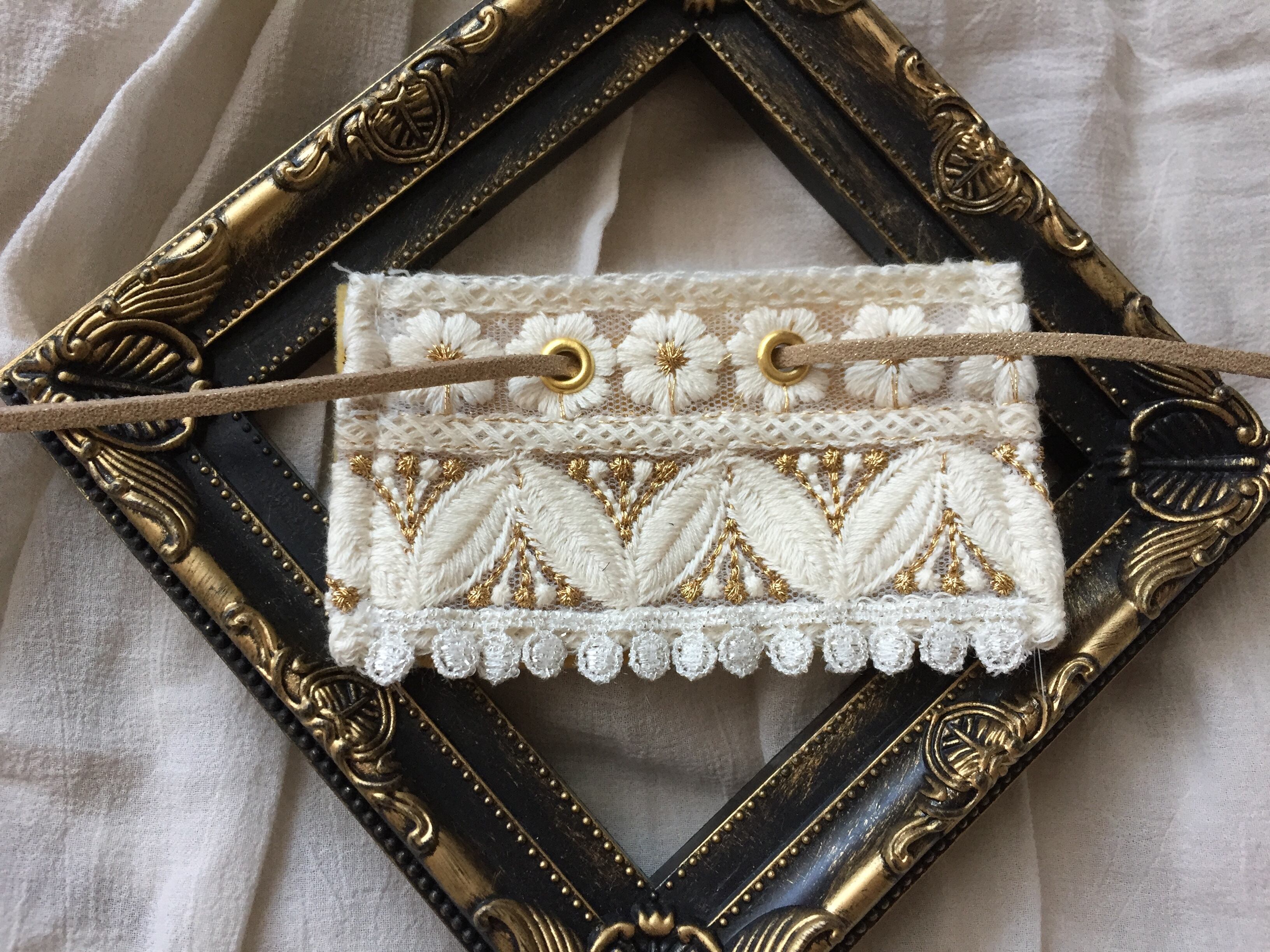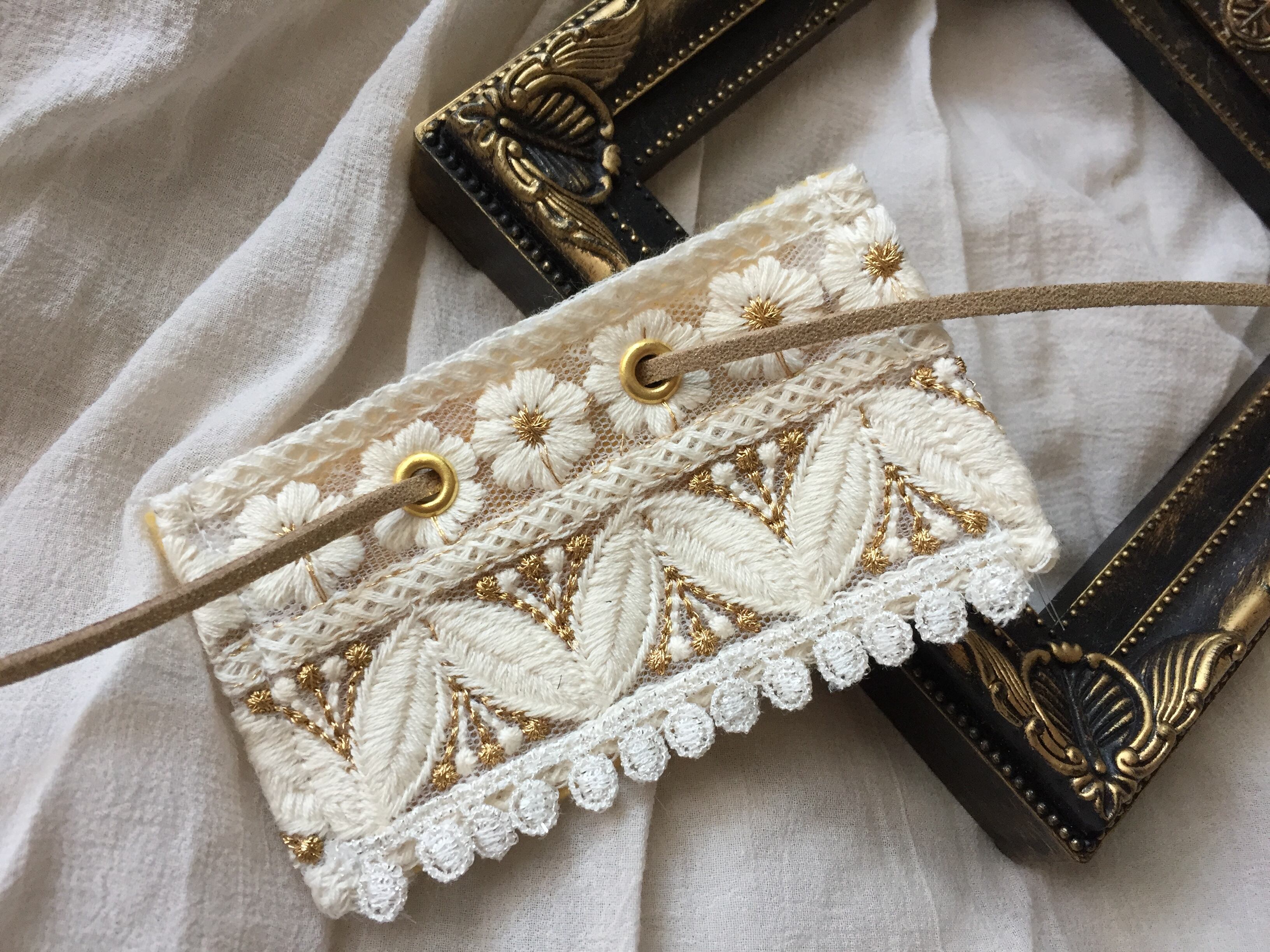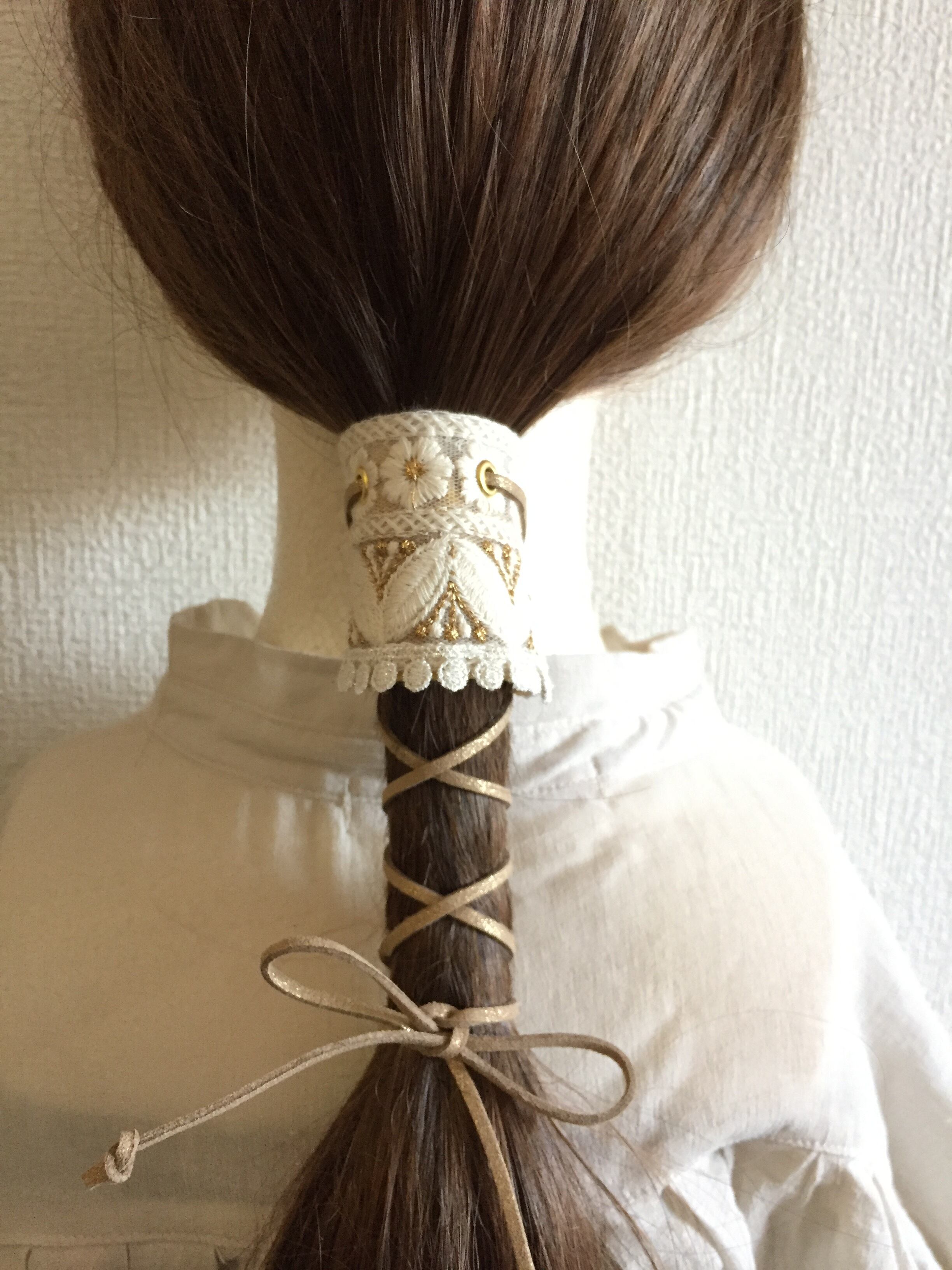 インド刺繍リボン ポニーフック ラップリボン リボンラップ レース×花柄