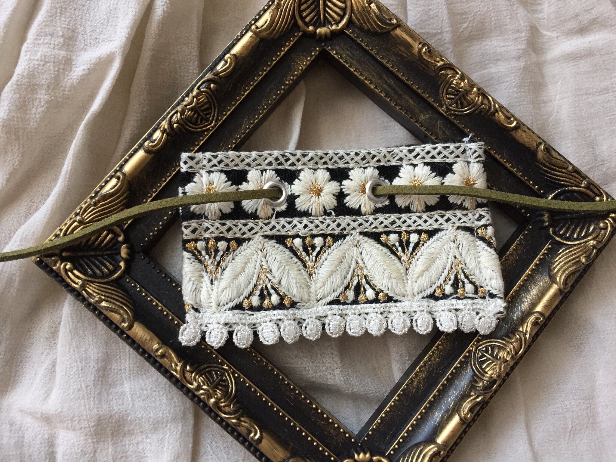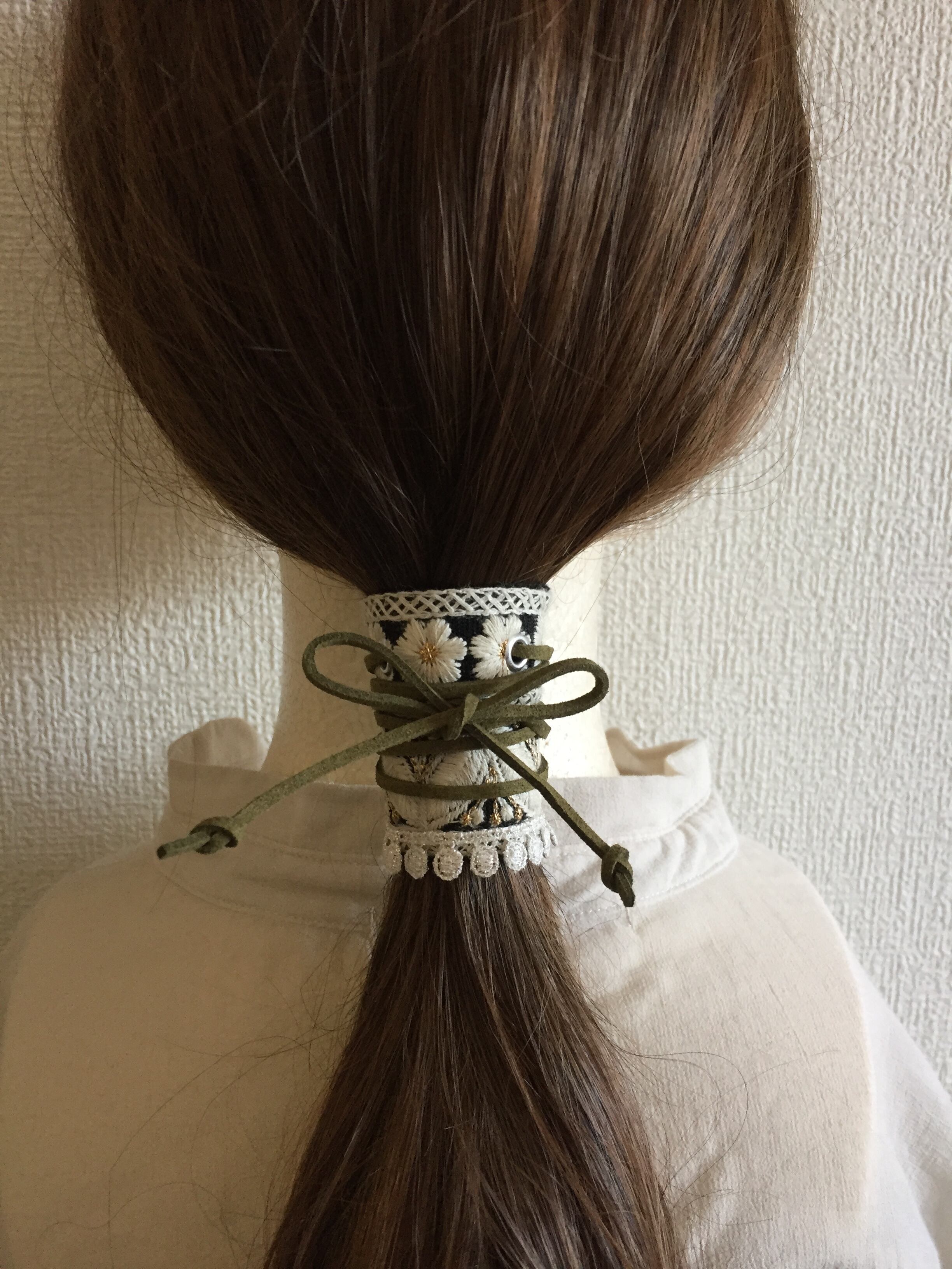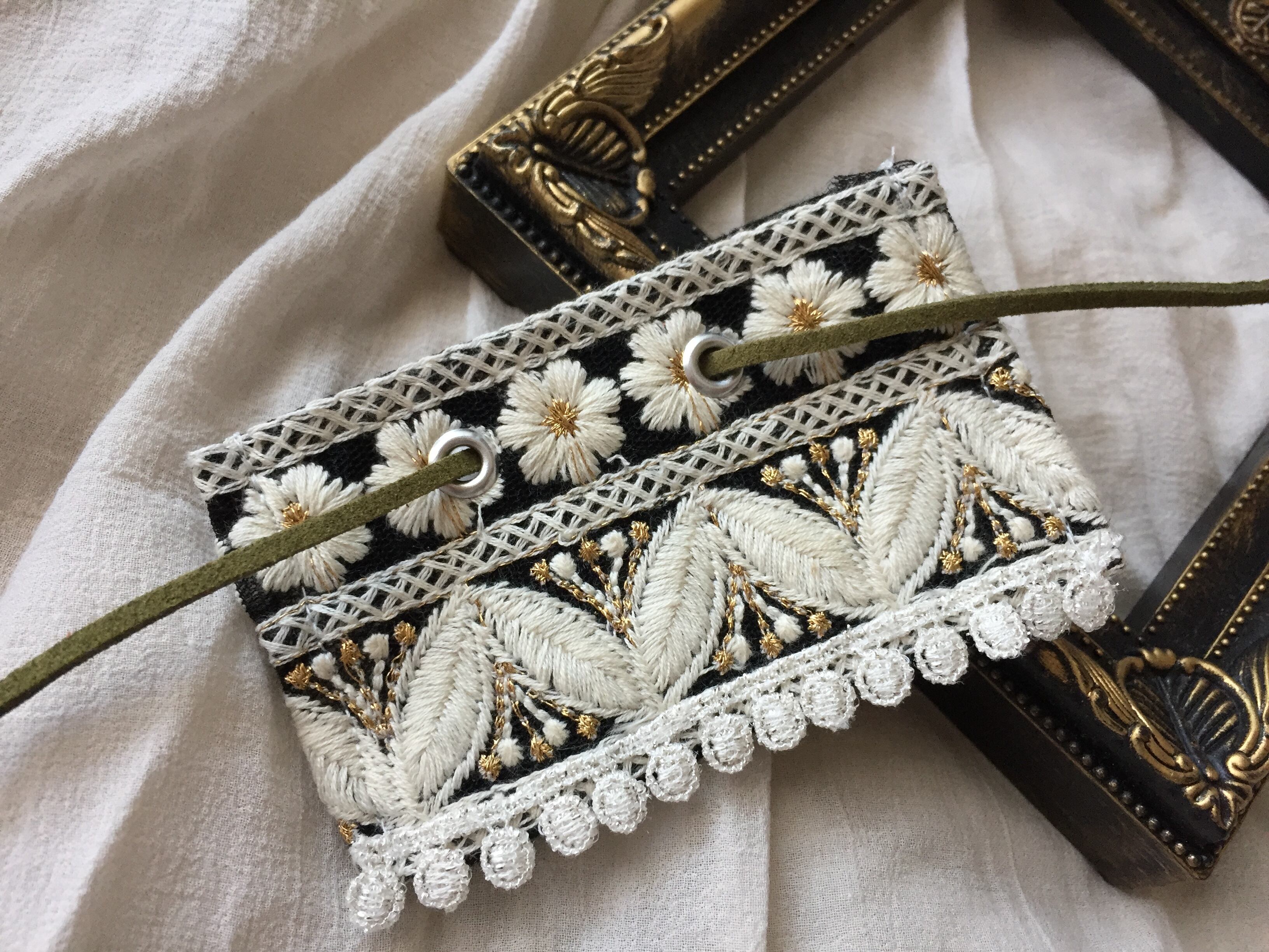 インド刺繍 リボン ポニーフック ラップリボン リボンラップ レース×ブラック