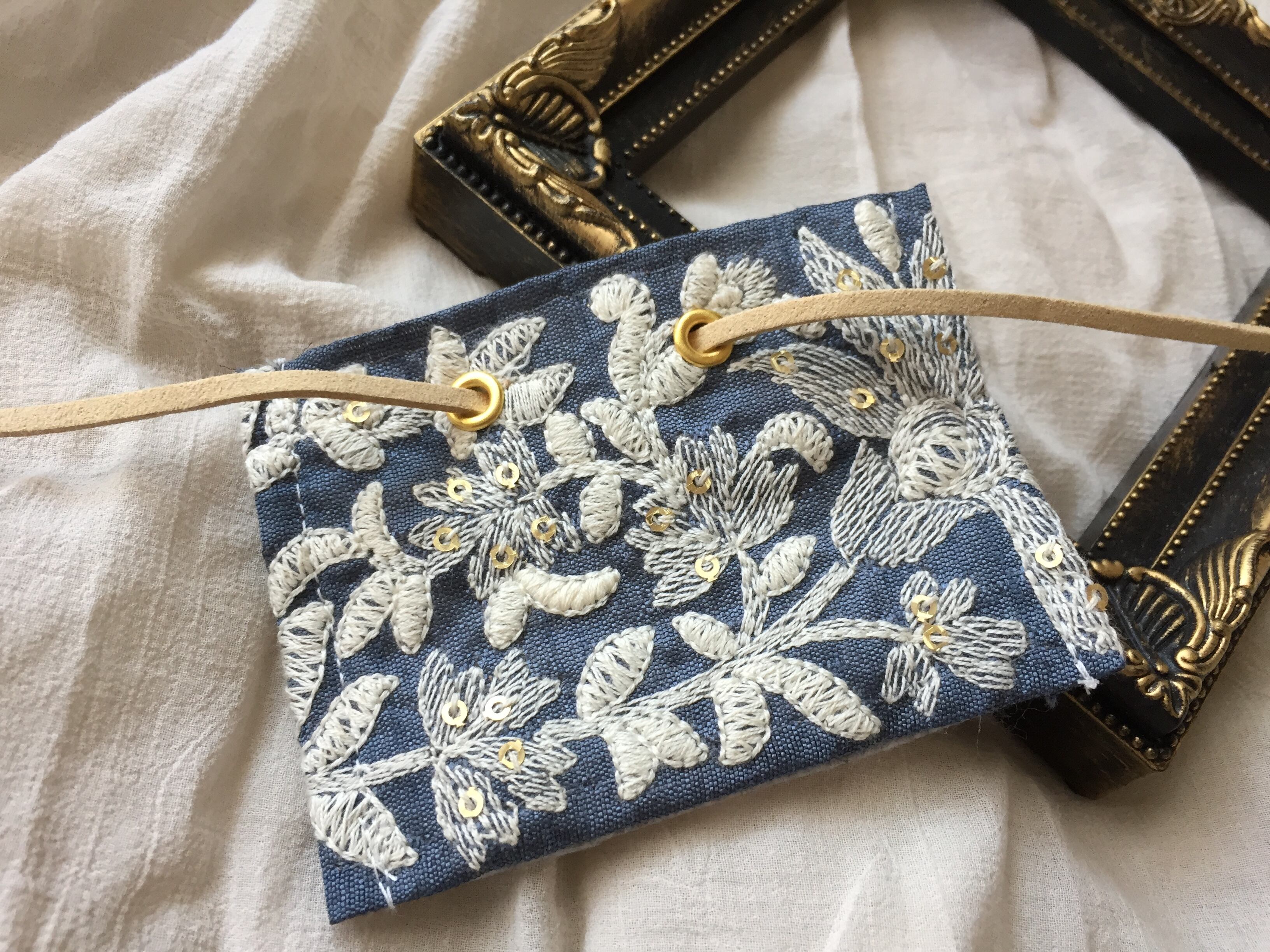インド刺繍は、手作りで作られております。中には、歪み・ホツレなどがある場合があります。こちらも、そういう所を使わないようにしますので、その点ご理解お願い致します。
