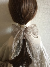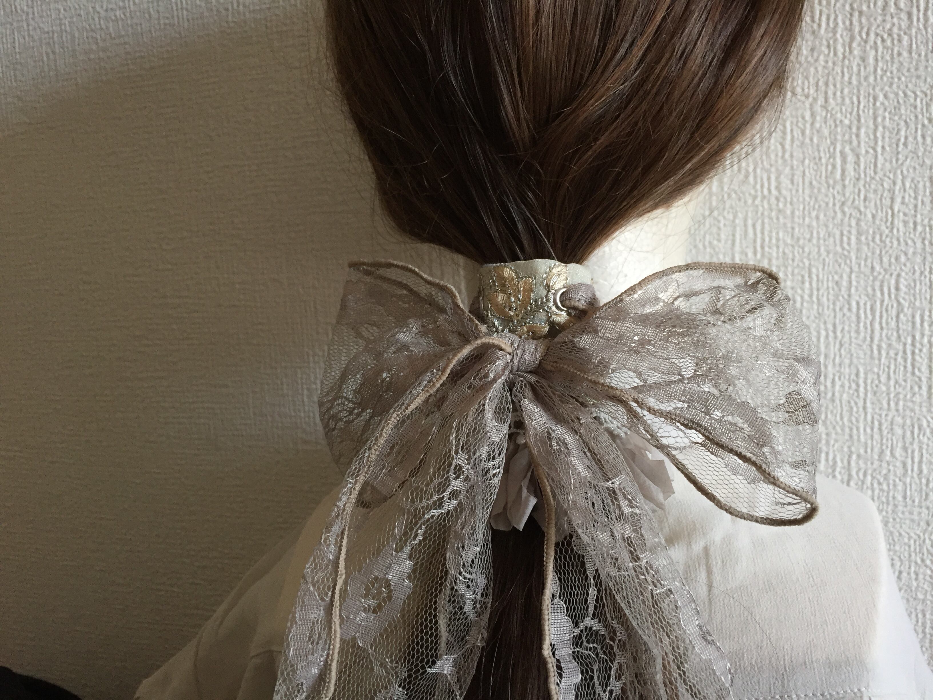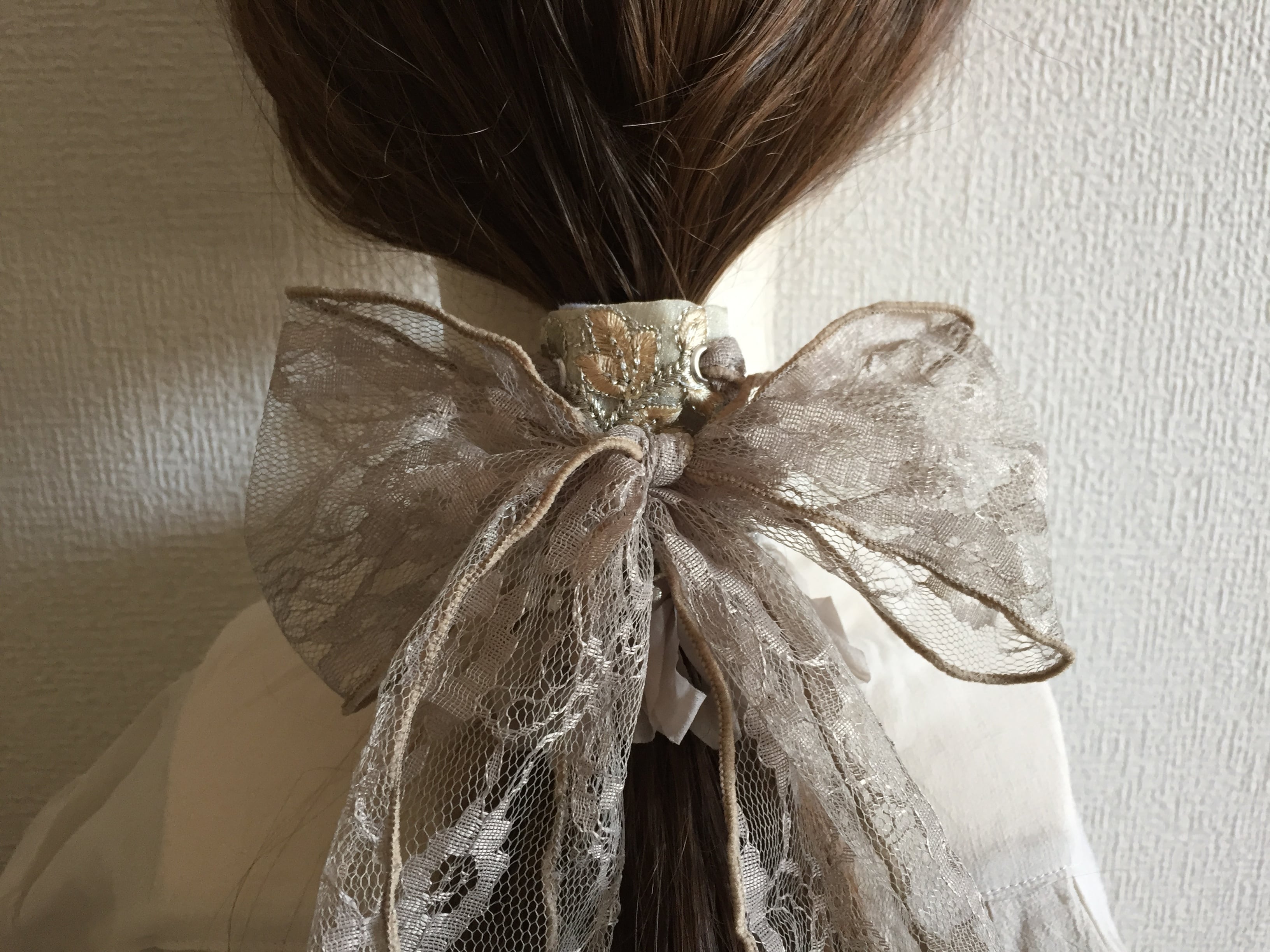 インド刺繍リボンを使った2種類のレースが可愛いラップリボンのヘアアクセサリーです。