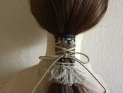 使い方は、お手持ちのヘアゴムで結んだあとにポニーフックを引っかけて紐を結ぶだけです。