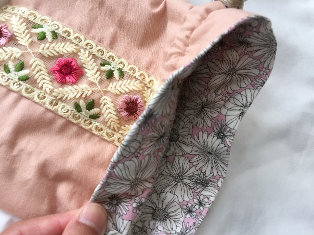 インド刺繍 リボン まんまる 巾着 ポーチ ピンク 丸巾着