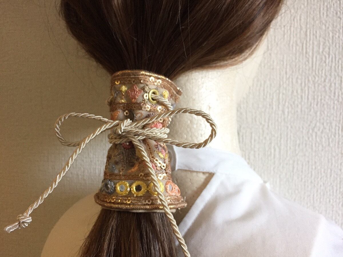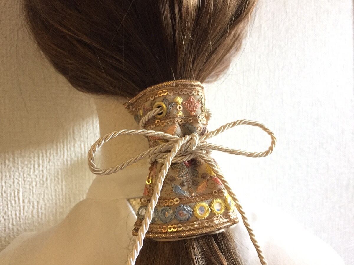 インド刺繍リボンを使用した可愛いラップリボンのヘアアクセサリーです。