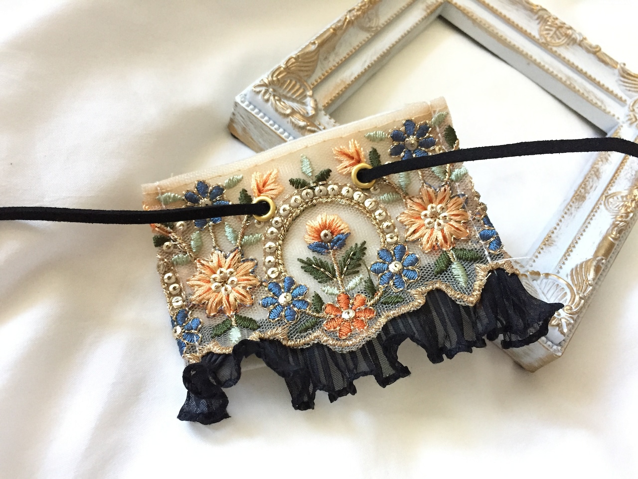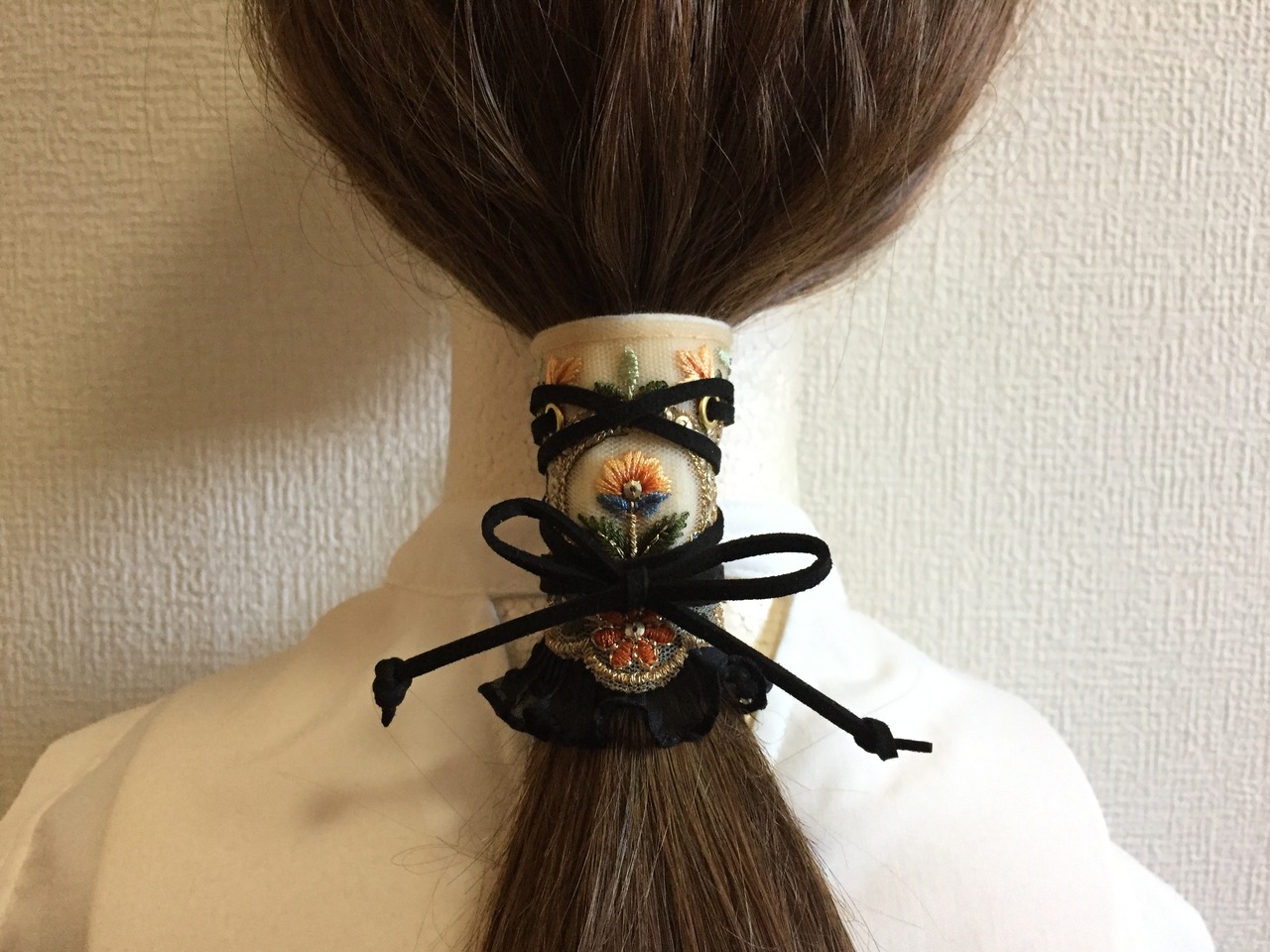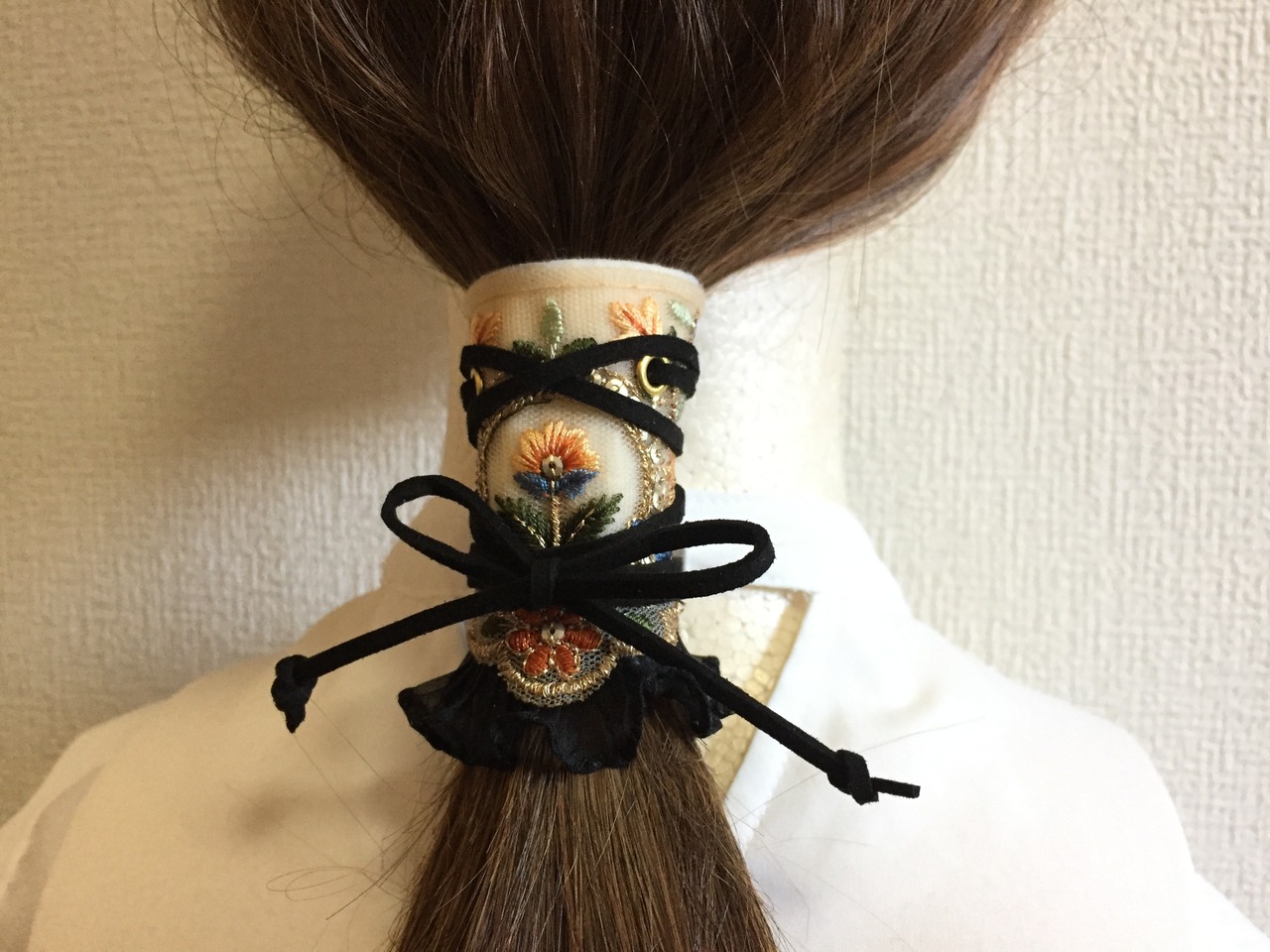 インド刺繍 リボン ポニーフック ラップリボン リボンラップ ブラックレース