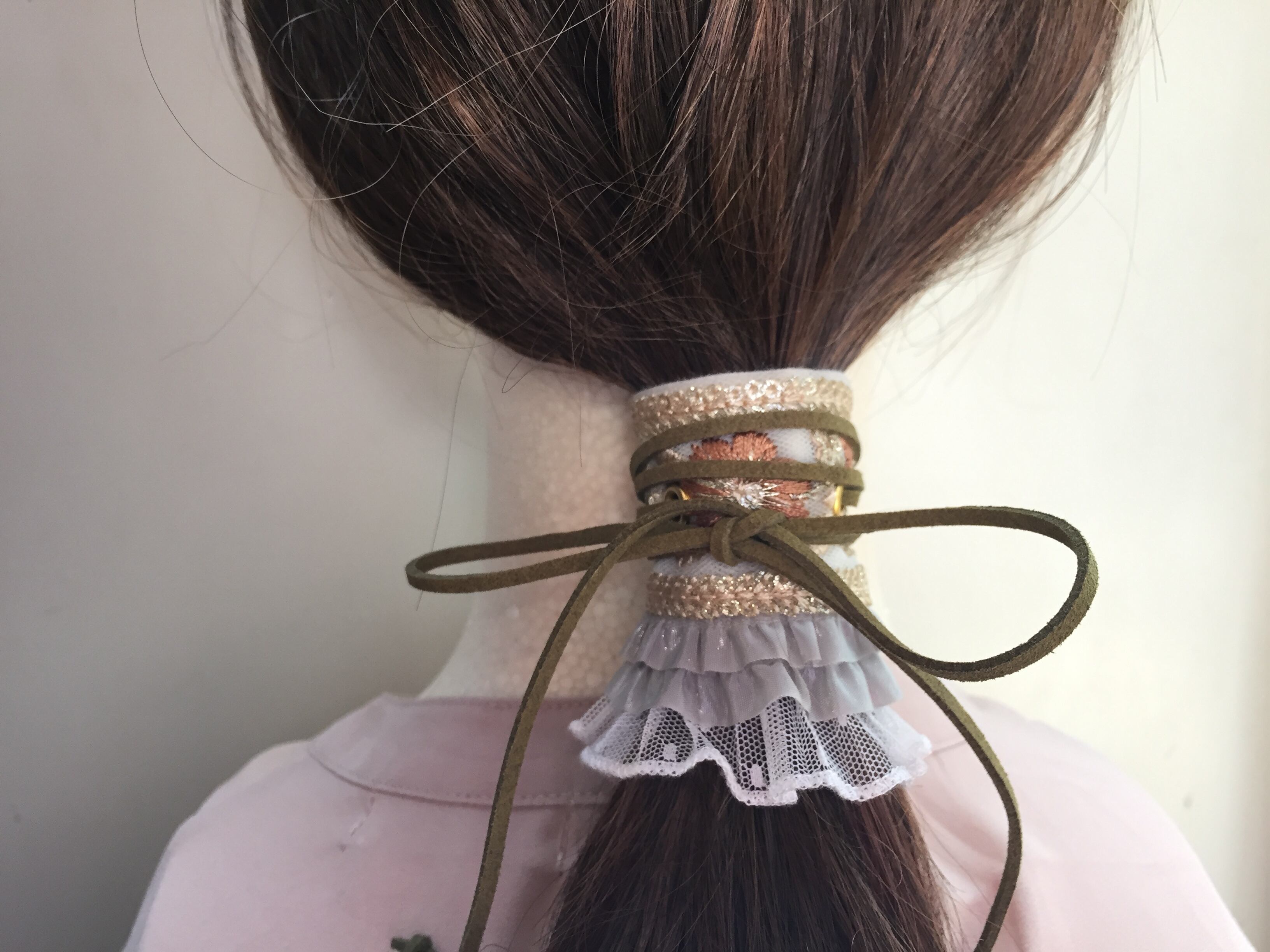 インド刺繍リボンとレースを使用した可愛いラップリボンのヘアアクセサリーです。
