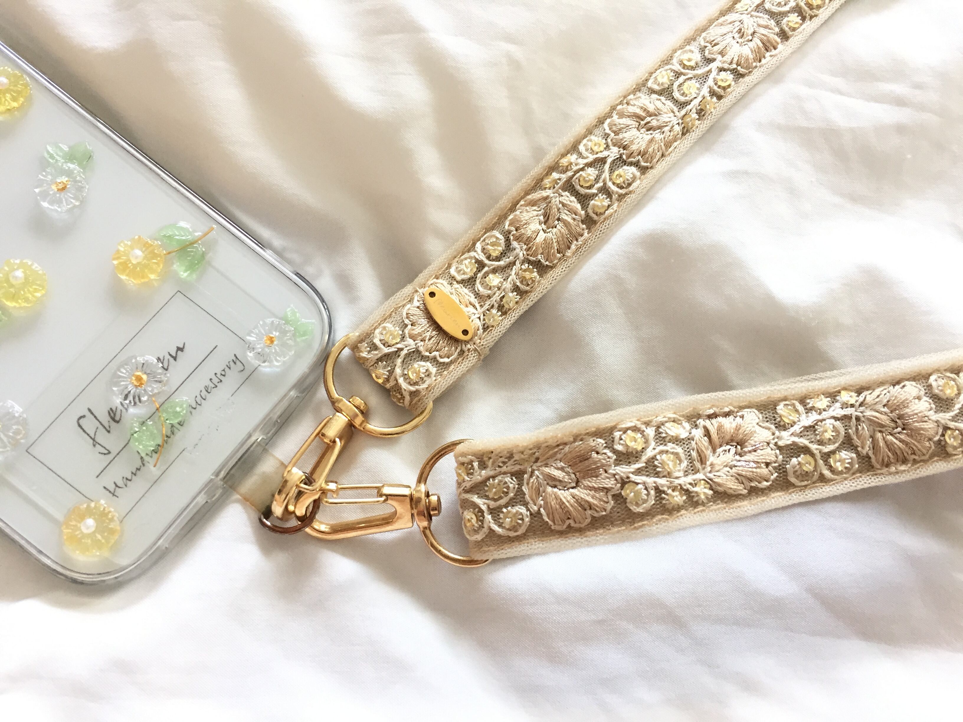 インド刺繍 リボン ショルダーストラップ スマホストラップ スマホストラップショルダー キナリ